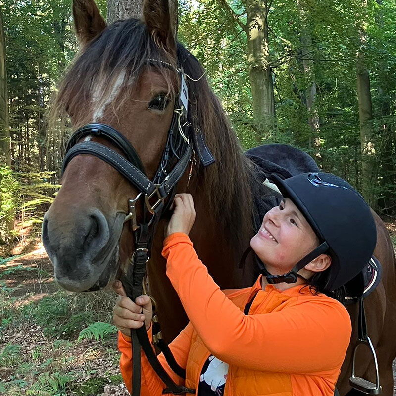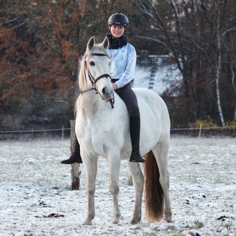 Dani gehört schon seit ihrem zehnten Lebensjahr zu unserem Ponyhof. Ihre allererste Reitstunde hatte sie damals auf unserer wundervollen Cassandra – ein Erlebnis, das ihre Leidenschaft für Pferdearbeit geprägt hat.