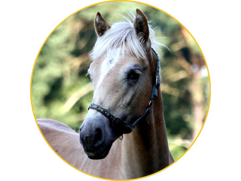 Arina ist eine besonders hübsche Haflingerstute, die ursprünglich in Südtirol zur Zucht eingesetzt und ab Mitte 2023 schonend bei uns angeritten wurde. Sie begeisterte uns von Anfang an mit ihrer aufgeweckten, verknuddelten Art und ließ mit ihren bequemen Gängen viele Reiterherzen höher schlagen. Im Gelände zeigt sie sich trittsicher und unerschrocken – und ist flott unterwegs. Arina hat uns am 27.01.2024 vollkommen überraschend den kleinen Anton geschenkt und damit natürlich einen besonderen Platz in unserem Herzen. Inzwischen läuft sie aber wieder ganz normal im Unterricht mit und macht ihren Reitern große Freude, auch da sie sehr dressurambitioniert ist. Aktuell ist sie aufgrund ihrer flotten Art eher für Fortgeschrittene und Wiedereinsteiger geeignet, ihr friedlicher und tatsächlich etwas mütterlicher Charakter hat aber auch schon manche Anfänger begeistert.
